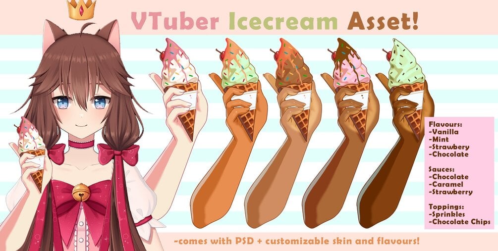 A collection of different ice-cream hands! Includes different skin-tones and flavor combos!
